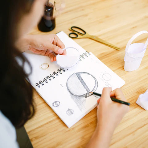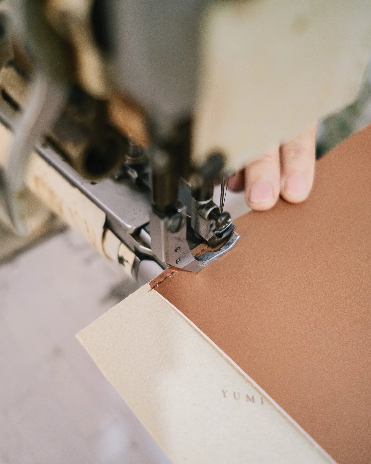 私たちは製造工程全体で廃棄物の最小化に努めています。製造初期のプロトタイプ段階では、紙の端材を活用してミニサンプルを作成します。満足のいく完成系ができたら、ヴィーガンレザーの端材を用いて実物大のサンプルを製作します。その後は少量生産に移行し、製造過程で発生する端材をダストバッグや今後のサンプル製作に再利用しています。