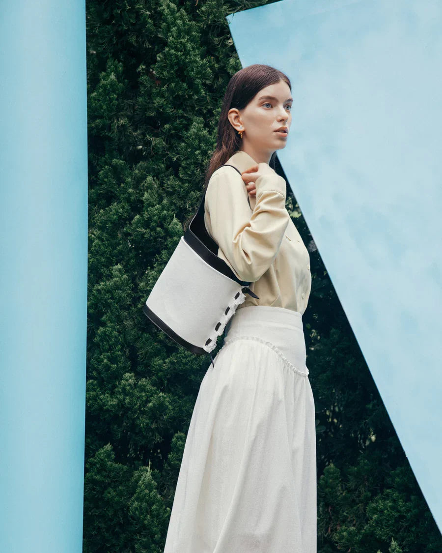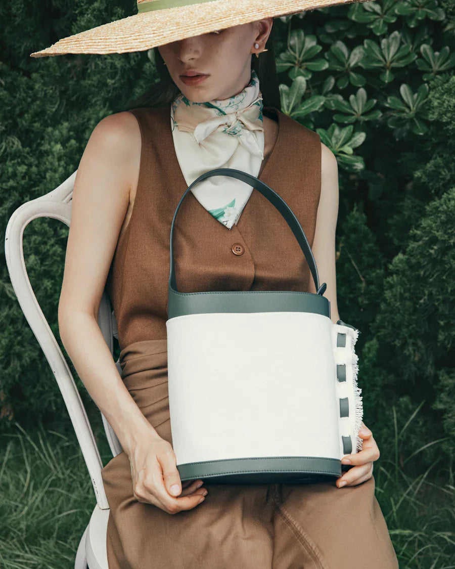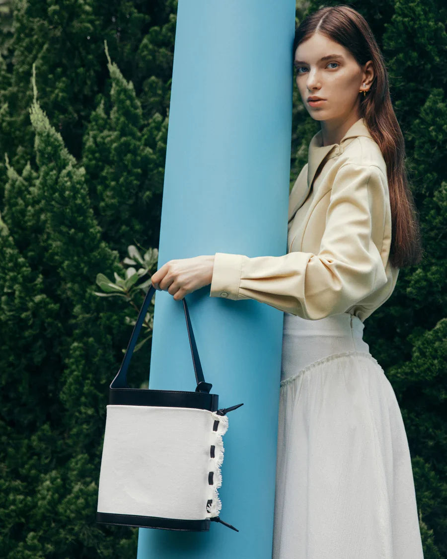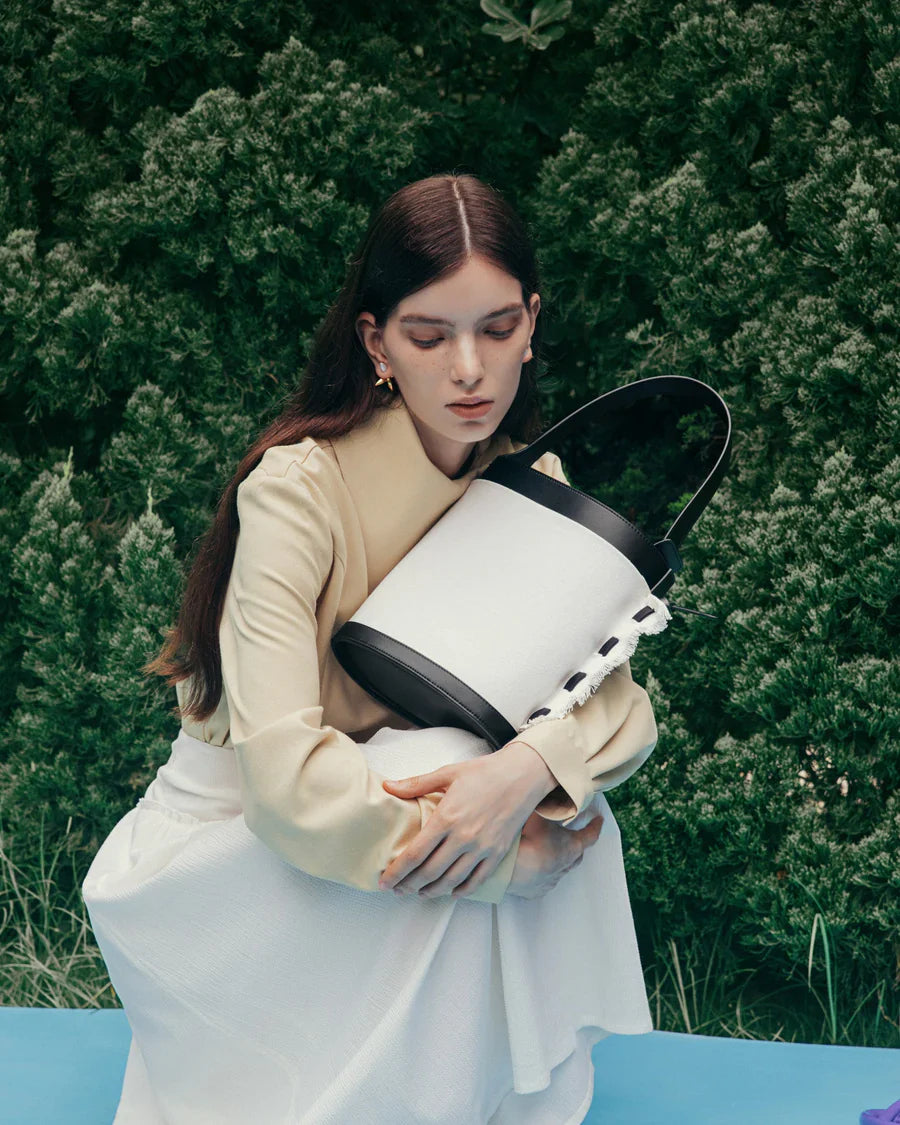 ・リサイクルキャンバス生地と リサイクル素材でできたヴィーガンレザーを使用したバッグ。